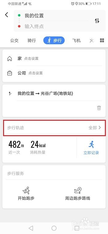第四步好比我们利用步行导航的话,会主动记实轨迹,点击步行轨迹的全数,如下图所示: