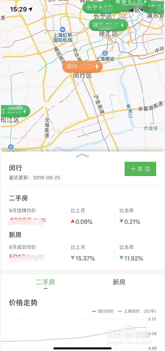 好比,我们定位到上海市闵行区,就能看到闵行区当前的二手房和新房均价;