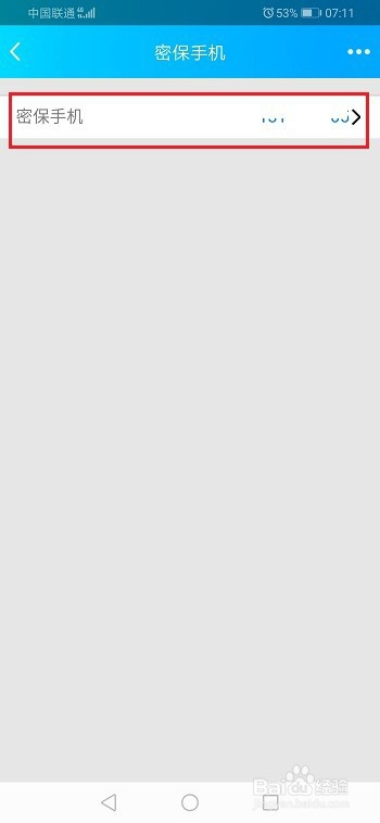 第五步进去密保手机之后,可以看到当前密保的手机号,点击进去,如下图所示: