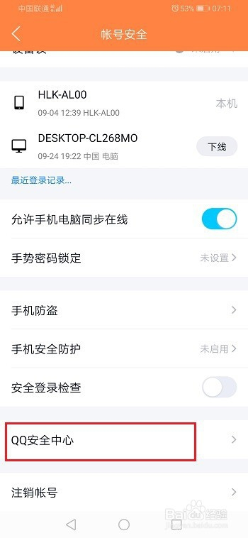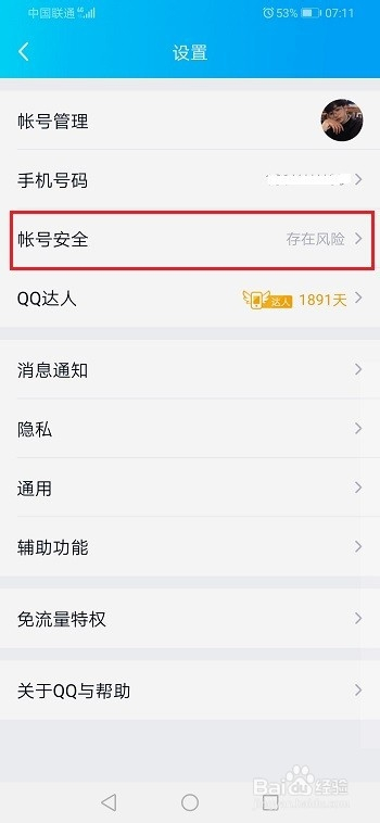 第二步进去之后,点击账号平安,如下图所示: