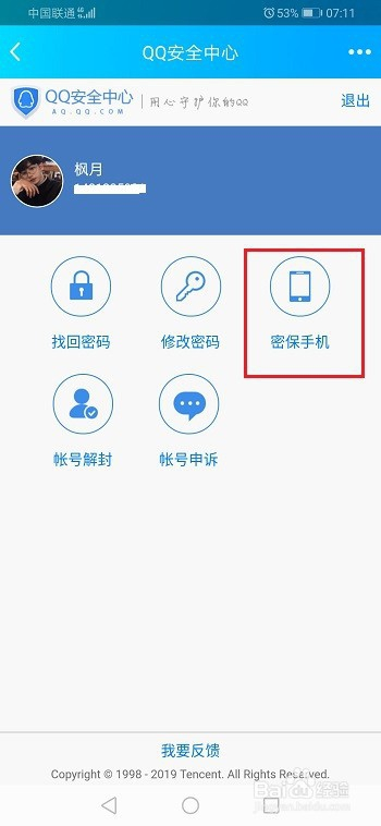 第四步进去之后,点击密保手机,如下图所示: