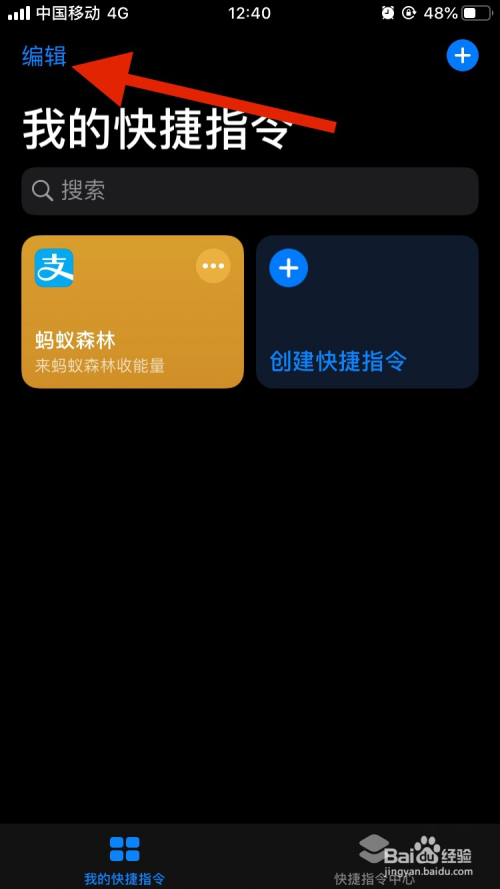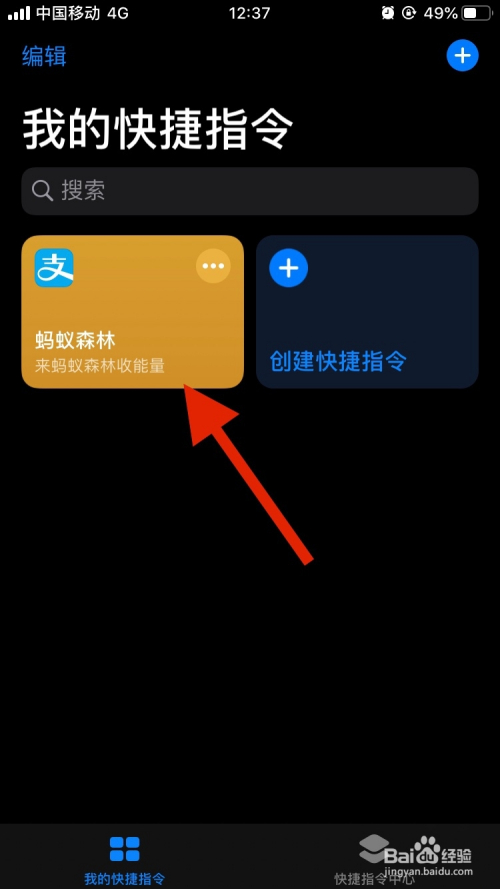 设置完当作快捷指令之后,回到“我的快捷指令”就看到方才设置当作功的快捷指令,我们只要点击该快捷指令就顿时跳转到蚂蚁丛林