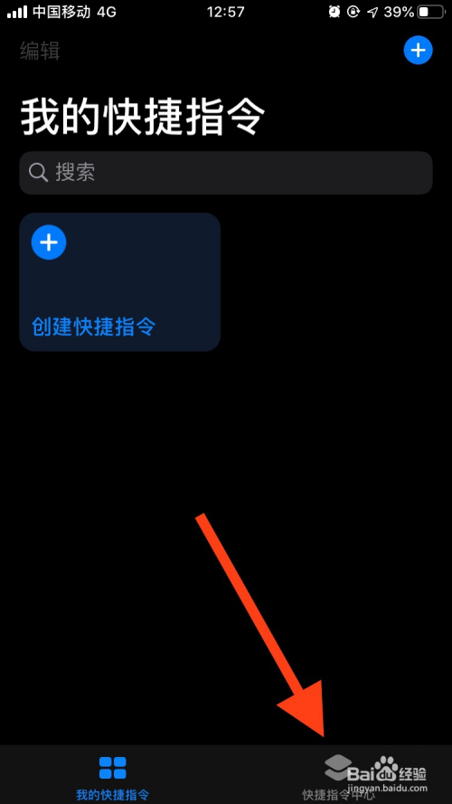 首先打开手机软件的快捷指令,然后点击界面右下角的快捷指令中间