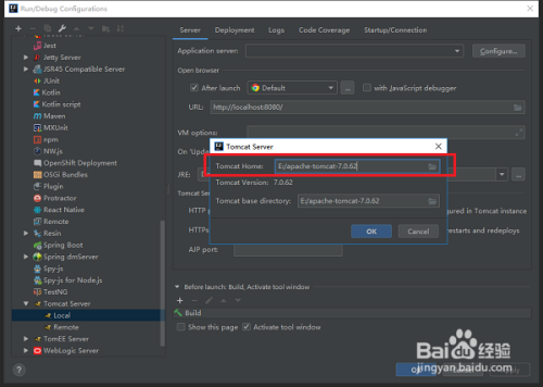 第四步点击右侧的Configure,进行选择当地tomcat路径,如下图所示: