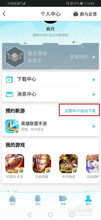 第三步进去我的游戏界面,可以看到预约的新游,点击设置wifi主动下载,如下图所示: