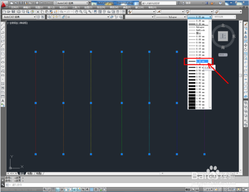 为使打印清楚,首先我们应该设置好线宽的大小。选中所有线段后,点击特征东西栏中的【线宽节制】,我们以0.30为例,将选线的线宽设置为:0.30。点击下方【显示/埋没线宽】显示线宽;