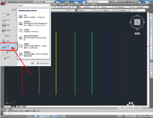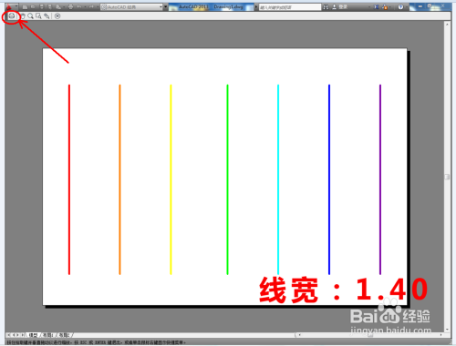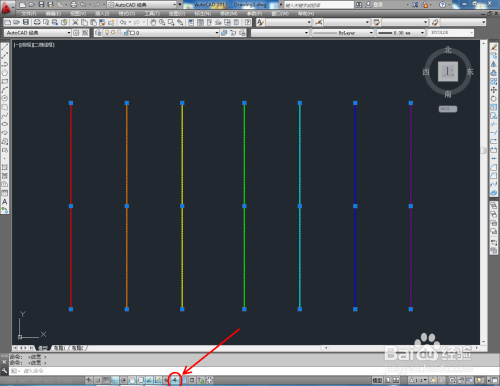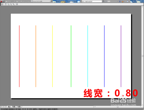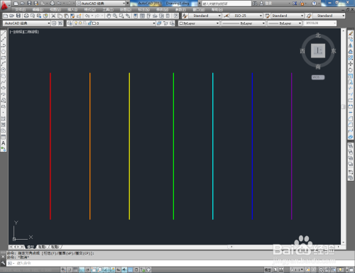 打开AutoCAD 2013软件,按图示绘制出几条彩色线段;