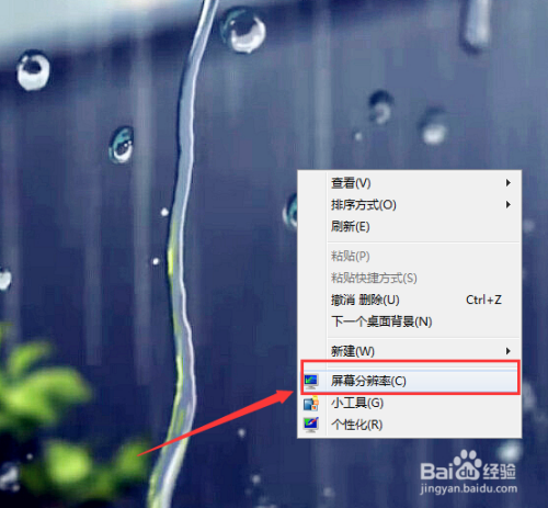 win7:点击鼠标右键选择屏幕分辩率设置