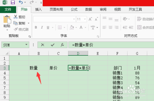 在单位格D3中输入公式“=数目*单价”,如图所示。