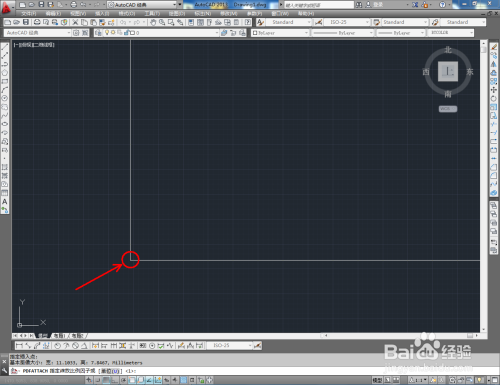 鼠标点击作图区域确定一个定点后,输入比例因子:1并按下空格键确认;