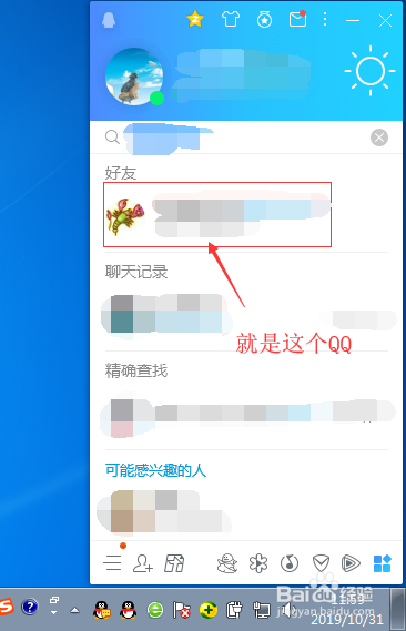 在“搜刮栏”中找到不想让他(她)看到你在线的“那个QQ”。