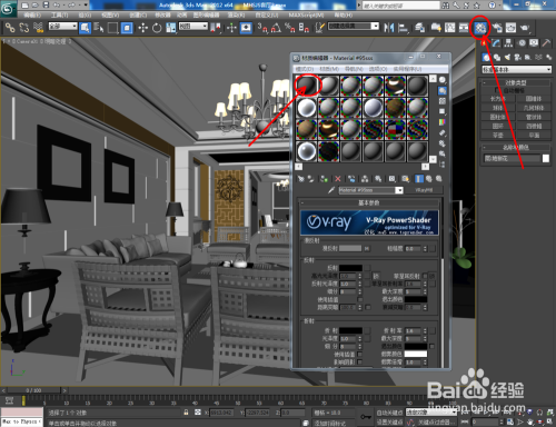 打开一个3Dmax文件,点击【材质编纂器】,拾取一个模子上的材质,可以看到,此时的模子处于材质丢掉的状况;