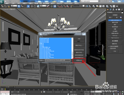 找到该3Dmax文件所用到的所有材质贴图,并将其放置到指定路径的文件夹内;