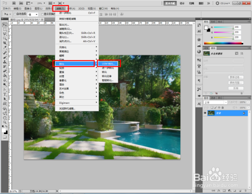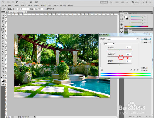 点击【图像】-【调整】-【色相/饱和度】,按图示对色相/饱和度参数进行设置。这样我们就处置当作高清图片了。