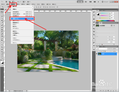 打开Photoshop CS5软件,打开需要处置的图片文件。点击【图像】-【图像大小】,将图像分辩率设置为:300;