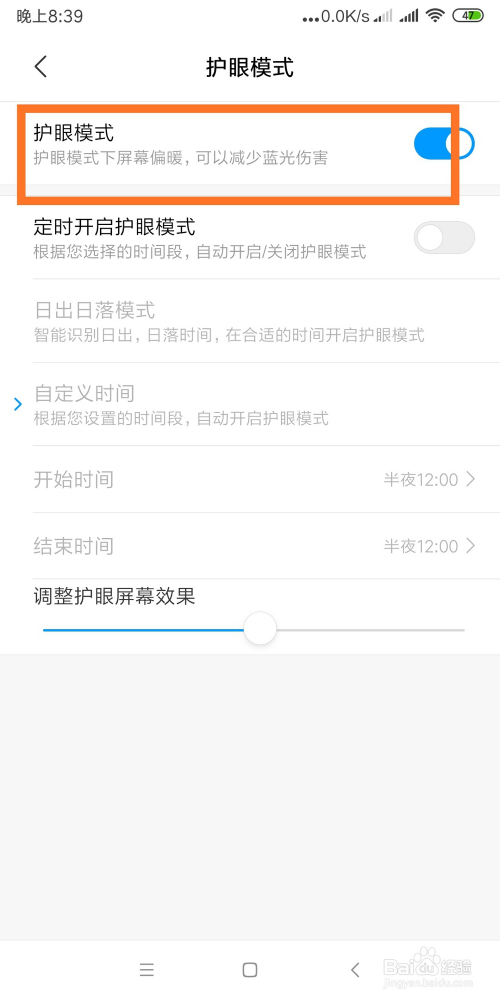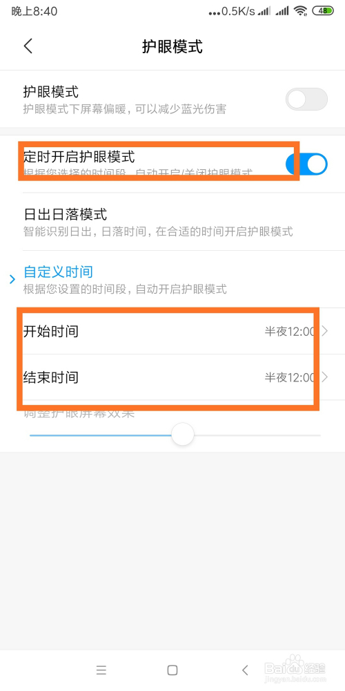 还可以选择“按期开启护眼模式”,并设置开启的时候段,如图所示: