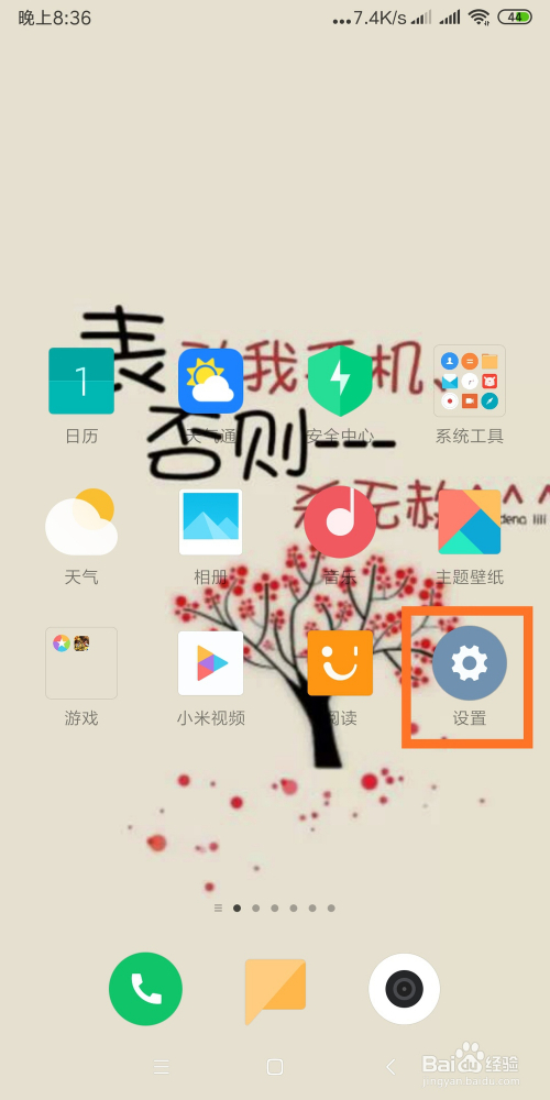 打开小米手机,进入本家儿界面,找到“设置”按钮打开,如图所示: