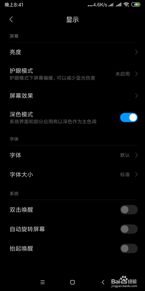 若是感觉屏幕不敷暗,还可以经由过程下方调节屏幕结果,如图所示:
