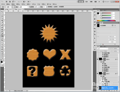 最后,将我们设置好的木质颗粒结果图层样式拷贝粘贴给别的几个自界说图案即可。