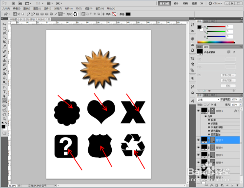 打开Photoshop CS5软件,点击【自界说外形东西】在作图区域绘制一个自界说图案;