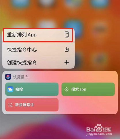 长按App,呈现菜单的时辰松手;