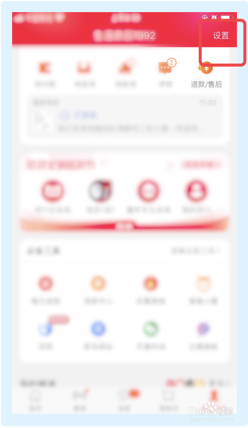 在【我的淘宝】界面,选择并点击【设置】选项。