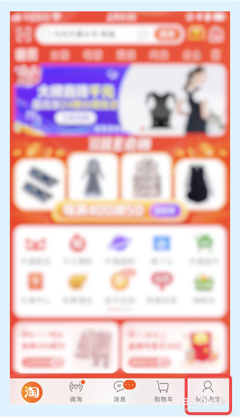 1.打开手机淘宝,选择并点击【我的淘宝】选项;