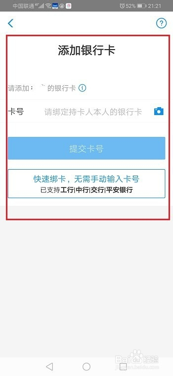 第四步没有达到18张银行卡,可以继续绑定银行卡,如下图所示: