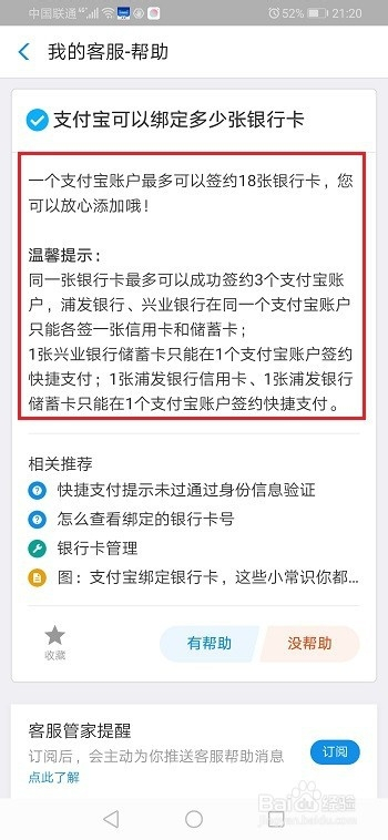 第一步我们首先需要知道一个支付宝账号最多可以绑定18张银行卡,如下图所示: