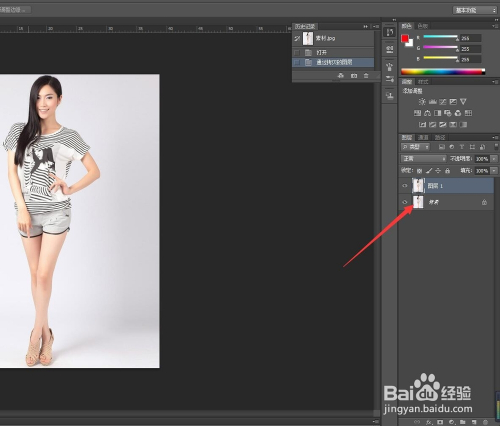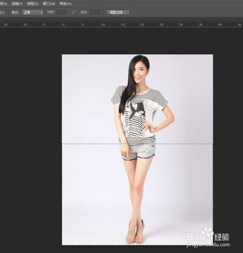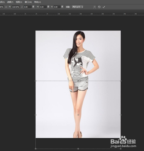 选择矩形选框东西选择人物腿部,接着按Ctrl+T或者编纂→自由变换