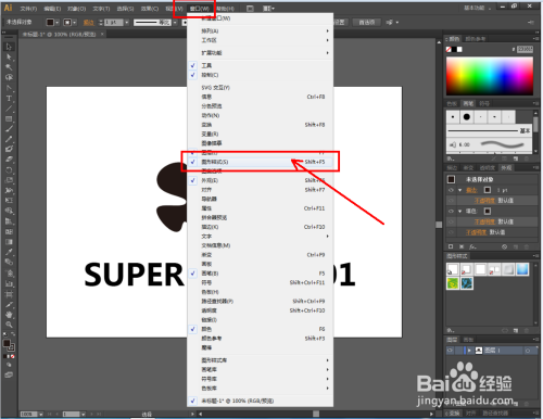点击【窗口】-【图形样式】。点击【图形样式库菜单】-【纹理】,将纹理样式东西栏调出;