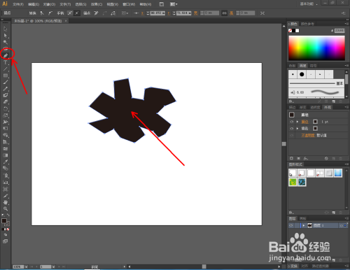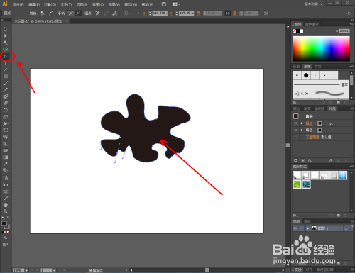 打开Adobe Illustrator CS6软件,点击【钢笔东西】绘制一个自界说图案。点击【转换锚点东西】对图案上的节点进行光滑圆化处置;
