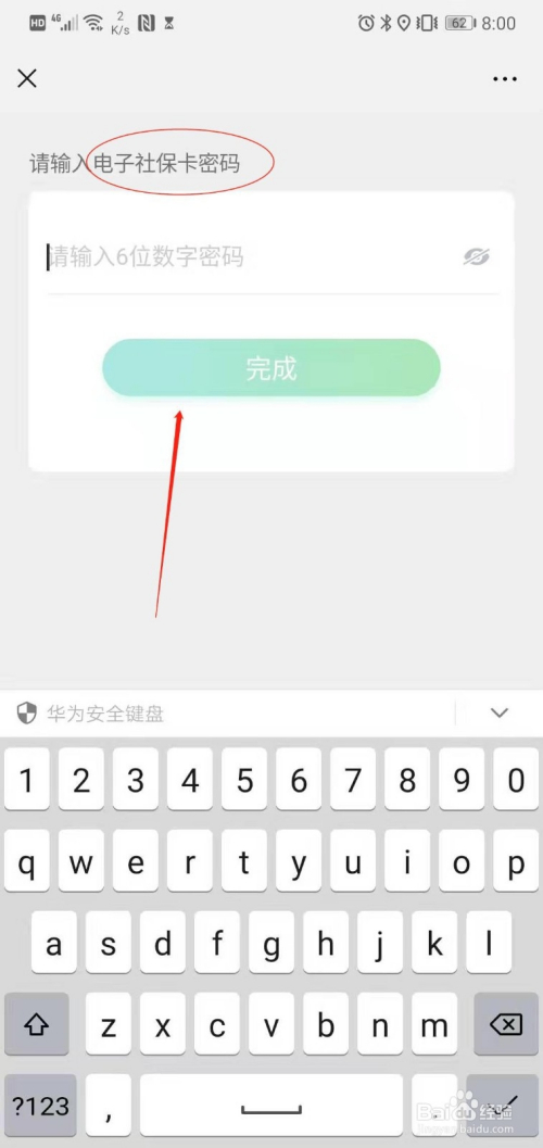8.进入电子社保卡密码验证,输入电子社保卡密码,如图