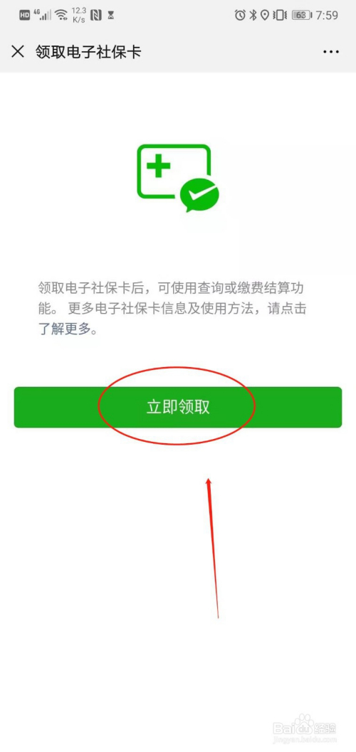 5.领取电子社保卡,选择“当即领取”即可。如图
