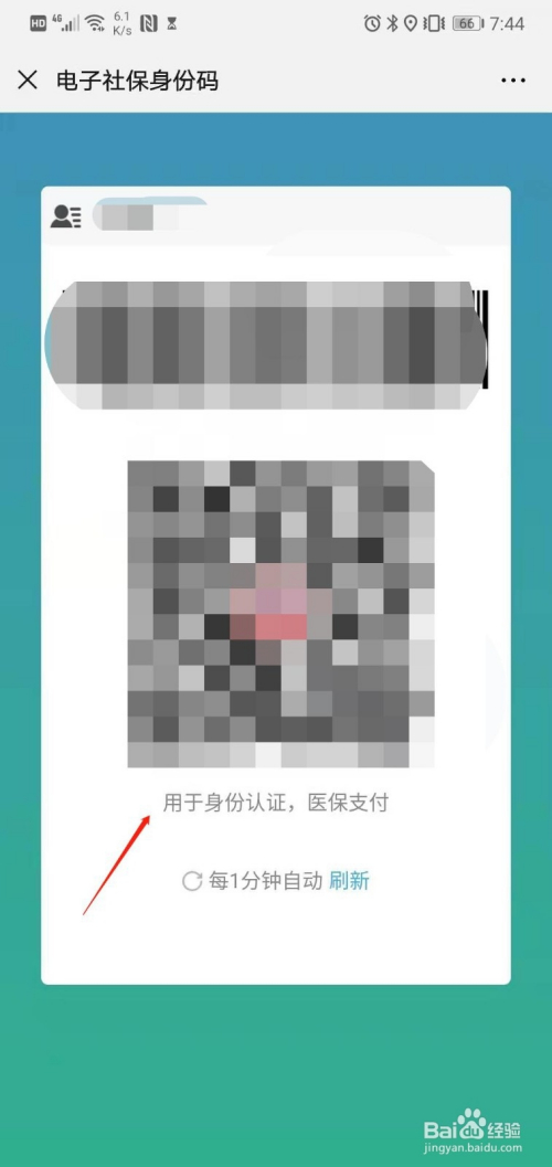 10.进入电子社保身份码,在利用医保支付时,供给该二维码扫码即可。如图