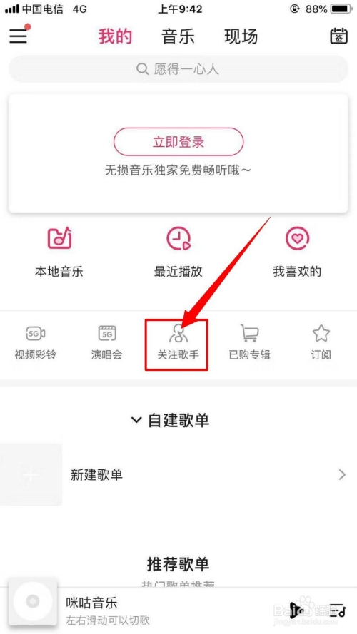 点进去之后我们就可以看到这条目软件的存眷歌手了。