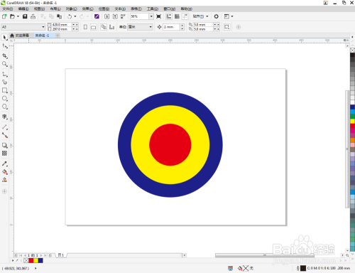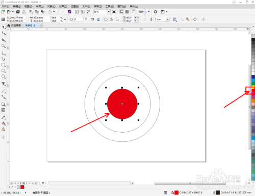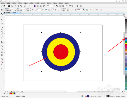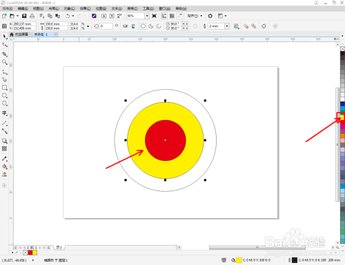 选中圆形图案,鼠标左键点击右边色板中的色块,将圆形设置为我们需要的颜色即可。