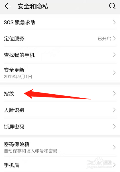 点击“指纹”选项。