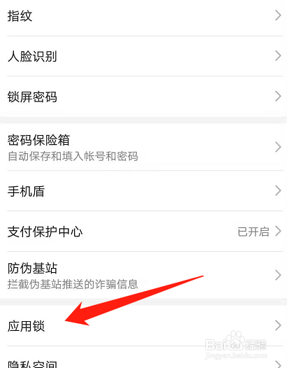 接下来再次回到“平安和隐私”界面,我们打开“应用锁”。
