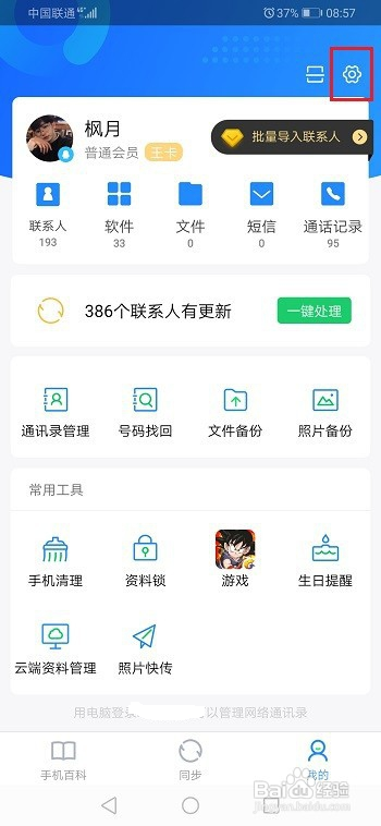 第二步进去qq同步助手我的界面之后,点击设置图标,如下图所示: