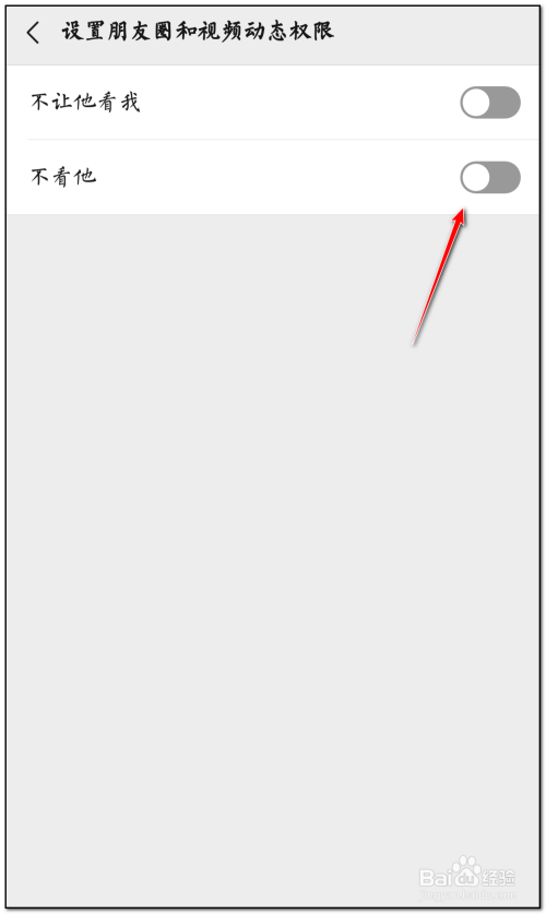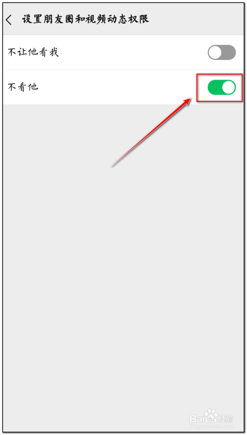 可以看到“不看他”后面的按钮是开启的,将其按钮封闭即可解除不看他权限