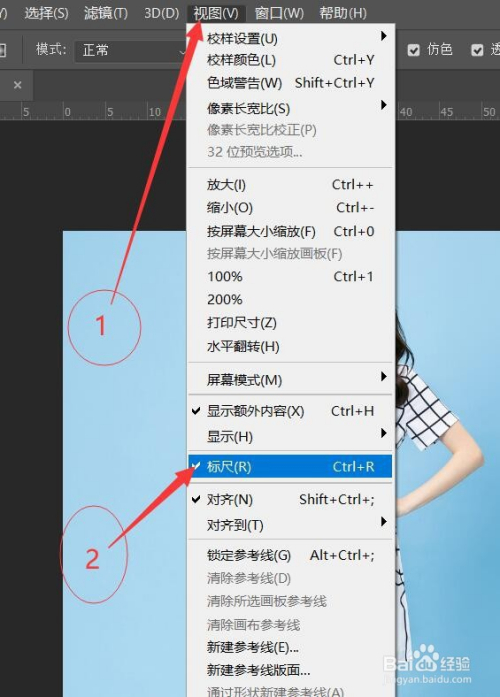 首先视图→标尺或者Ctrl+R跳出标尺,