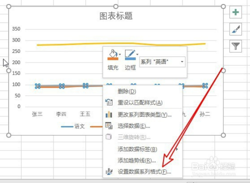 右键点击该折线,在弹出菜单中选择“设置数据系统格局”的菜单。