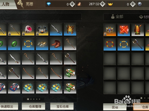 进入背包页面,还可以打开仓库,然后就可以看到存储的装备。