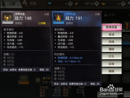 然后选择背包中比力优质的装备,点击第一项改换装备就可以完当作改换了。