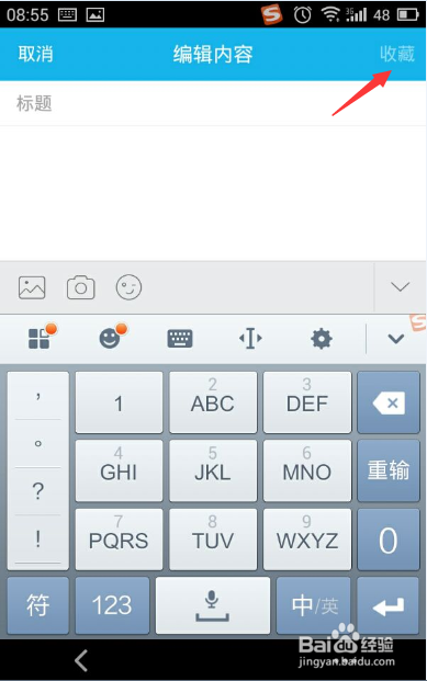 弹出的文本框中,输入题目和作为记实的信息,然后点击右上角的“保藏”。
