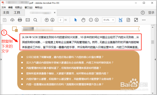 1、首先,我们用Adobe Acrobat Pro DC打开一个PDF文件,此中有一段文字我很想复制下来,如图所示。