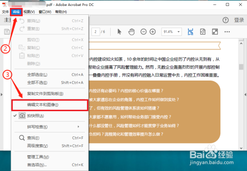 2、我们点击Adobe Acrobat Pro DC上方菜单栏中的“编纂”。