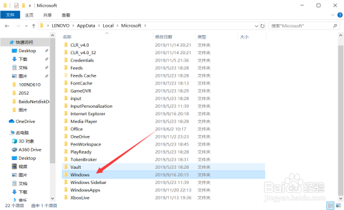 依次点击”Windows“文件夹,如图箭头指标的目的所示;