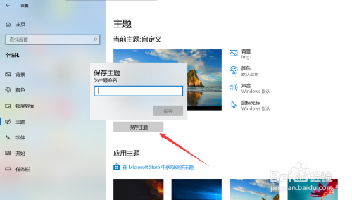 然后点击“保留本家儿题”选项,为本家儿题定名,小编定名本家儿落款为”山岳“,显示保留当作功即可,如图所示;